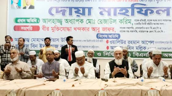 সাবেক প্রধানমন্ত্রী ও বিএনপির চেয়ারপারসন বেগম খালেদা জিয়ার আশু রোগমুক্তি কামনায় নারায়ণগঞ্জ-৩ (সোনারগাঁ-সিদ্ধিরগঞ্জ) আসনের মনোনয়ন প্রত্যাশীদের উদ্যোগে দোয়া মাহফিল অনুষ্ঠিত হয়েছে।