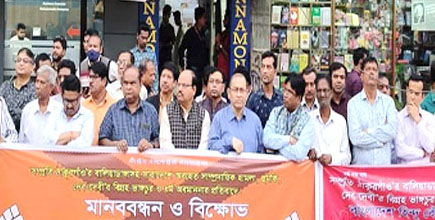 চাষাঢ়ায় ঐক্য পরিষদের মানববন্ধন নিজস্ব সংবাদদাতা স¤প্রতি ঠাকুরগাঁও, বালিয়াডাঙ্গী ও পিরোজপুরের মঠবাড়িয়ায় মতুয়া সম্মেলনে হামলাসহ সারাদেশে অব্যাহত সা¤প্রদায়িক হামলা, হুমকি, দেব-দেবীর বিগ্রহ ভাঙ্গচুর, ধর্ম অবমাননার প্রতিবাদে ঢাকাসহ সারাদেশের ন্যায় নারায়ণগঞ্জ আরো খবর