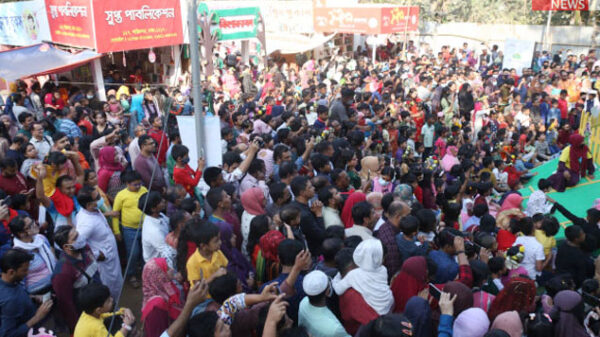 ছুটির দিনে বইমেলায় মানুষের ঢল দেশের আলো ডেক্স সাপ্তাহিক ছুটির দিনে মানুষের ঢল নেমেছে অমর একুশে বইমেলায়। পুরো মেলা প্রাঙ্গণেই দর্শনার্থীদের আনাগোনা। শিশু চত্বরও শিশুদের কলকাকলিতে মুখরিত ছিলো। শুক্রবার (১০ আরো খবর